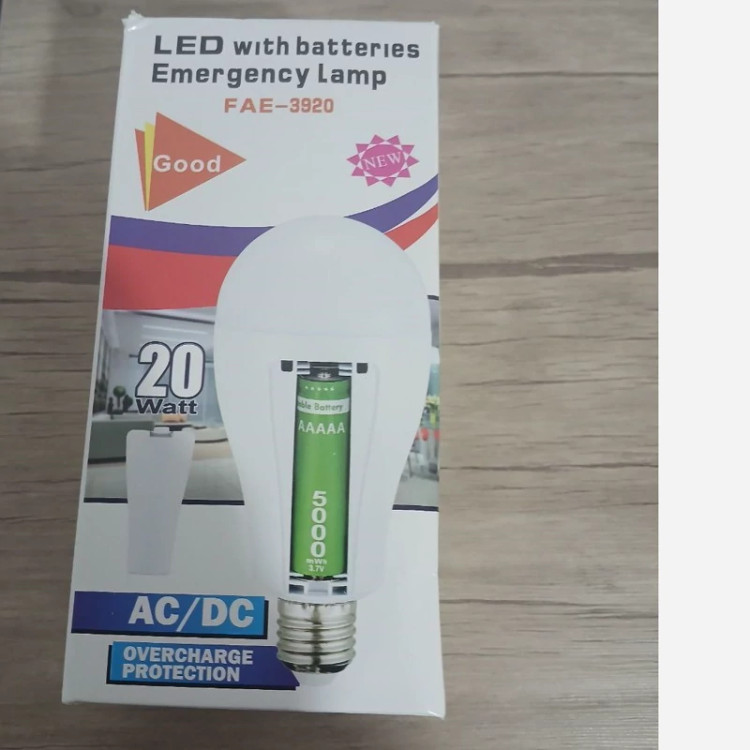 لامپ اضطراری شارژی دارای دو باتری لیتیومی با قابلیت شارژ مجدد از طریق برق شهری فقط کافیه 3 الی 4 ساعت به برق شهر وصل شه و شارژ شه و موقعی که برق میره به مدت 1.5 ساعت روشنایی عالی و نیم ساعت الی 1 ساعت روشنایی متوسط رو برای یه محیط 80 الی 90 متری در اختیارتون میذاره برای شارژ کافیه اونو به سرپیچ لامپ بزنین و کلید رو بزنین تا لامپ روشن شه و وقتی برق میره با روشن کردن کلید در موقع بی برقی میتونین ازش استفاده کنین مصرف برقش هم بسیار کم هست و برچسب انرژی اون A هست همچنین همونطور که گفته شد نیازی به خرید باتری ندارین [از هرینه زیاد در این زمینه جلوگیری میشه] و میتونین باتریش رو با برق شهر شارژ کنین