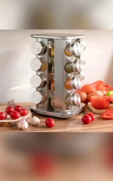 جا ادویه ۱۶ تایی: - استیل ضد زنگ - ۱۶ تایی - ابعاد مکعبی - دارای چرخش ۳۶۰ درجه - دارای سری نمک پاش - جنس بطری ها از شیشه